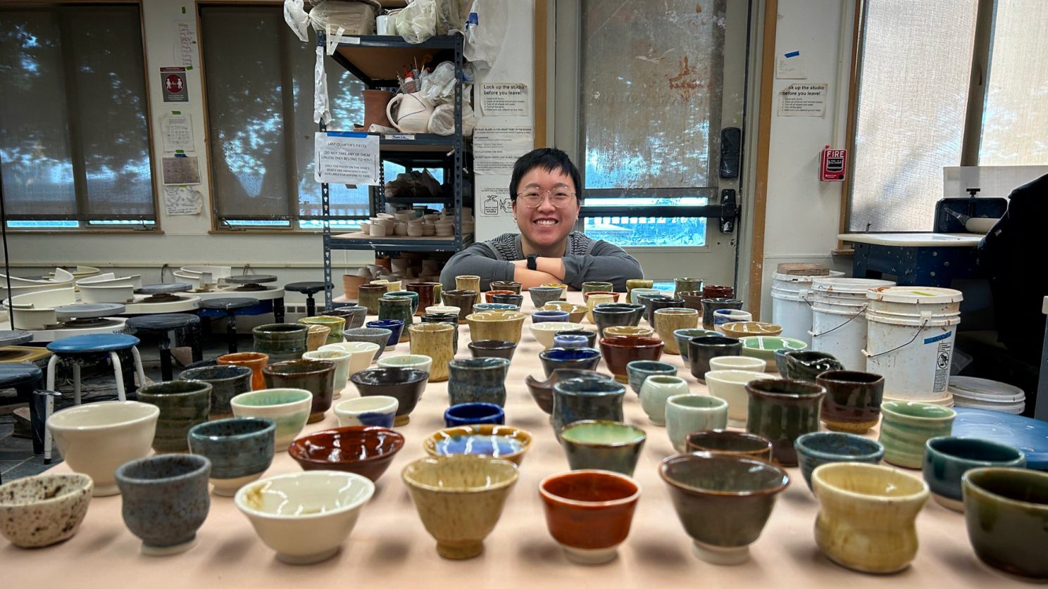 I am really happy and proud of the way the piece came out. It was super interesting to see which cups different people gravitated towards, and fun for me to see which ones my friends picked up compared to the ones I had imagined for them. This piece has now had a second life outside of Stanford, as part of the Forming Function exhibition at Palo Alto Art Center. I got to see my work in conversation with other functional ceramic artists and how it could resonate with people beyond my immediate circle.